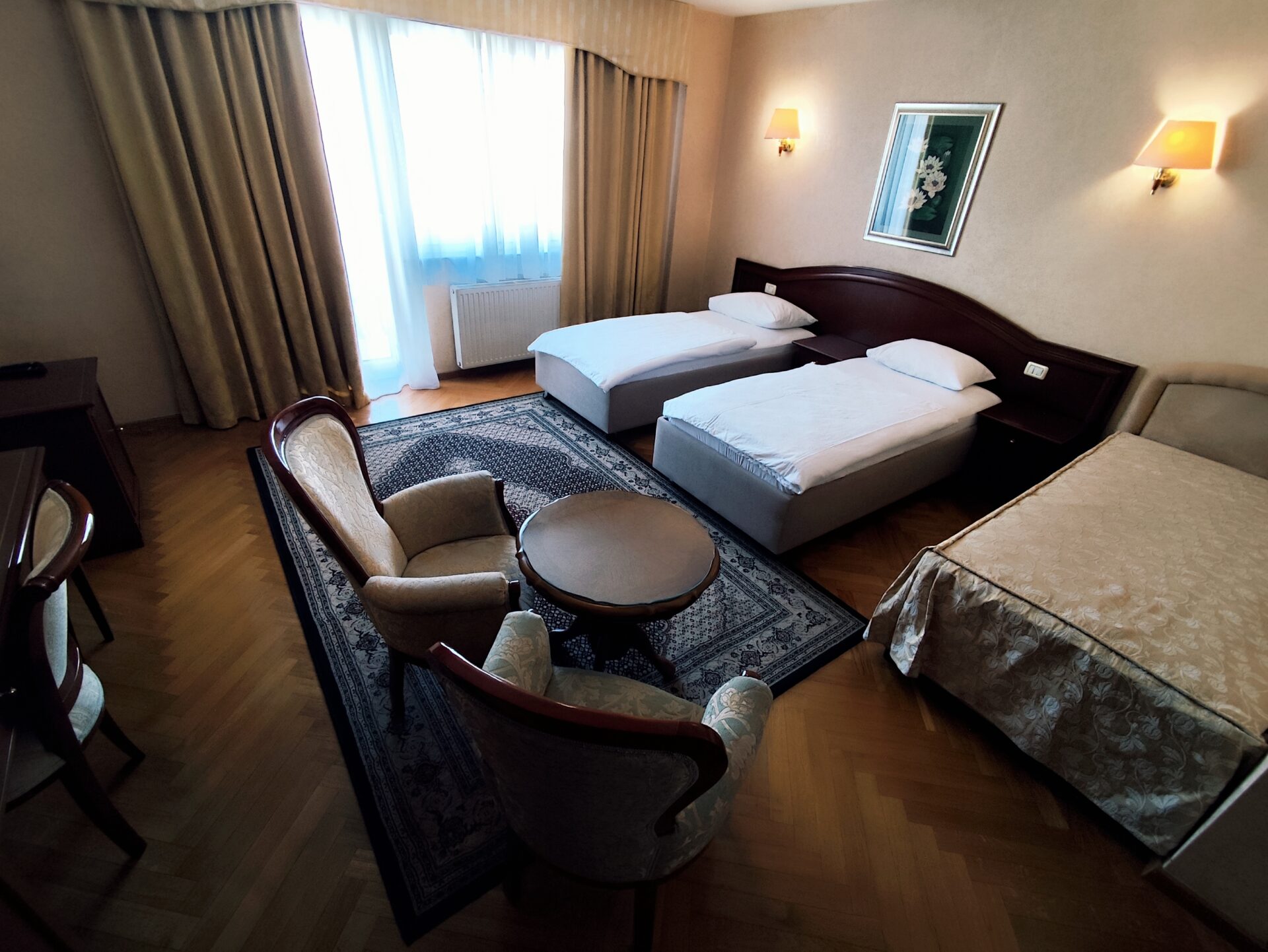 - Pogodnosti / Sadržaji: Air-conditioning, Bathroom amenities, Flat-screen TV, Free Wi-Fi, Hair dryer, Hotel entry with a code, Lamp / Lighting, Mini fridge, Private safe, Smile and service, Towels, Wardrobe or drawers